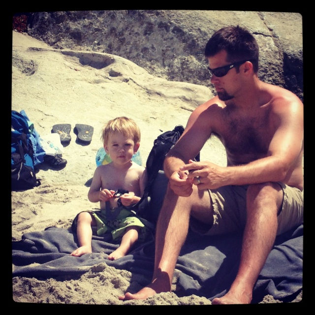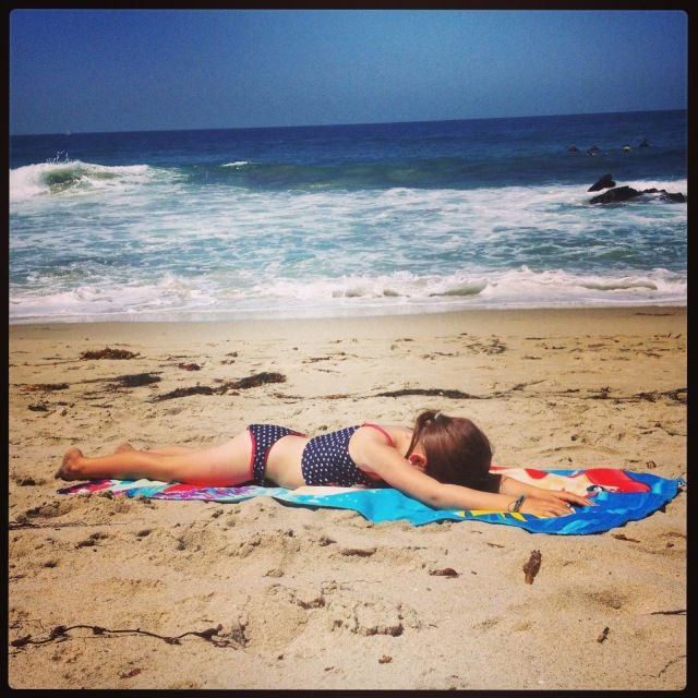 We finally located the place on the beach where we were wanting to have dinner the previous night. Tucked away in a little canyon sits Crystal Cove. While waiting for our table at the beachside cafe, we had an hour to play on the beach, collect treasure and admire the foaming blue-tinted waves. We were able to witness the most amazing sunset drop into the ocean. During our San Diego vacation, I took (my timer took) a silhouette picture of Addi, Daddy and I against a glowing sunset ocean (Landon was in my belly, so he was there too!) and it has become a little tradition of ours. This year’s picture, in my humble opinion, is just stunning and I cannot wait to blow it up and hang it on our new wall!