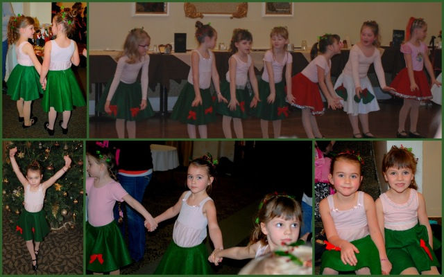 The first of her two Christmas recitals was held at a local retirement home. Many, many dolled up ballerinas showed off their moves for a banquet room full of family, friends and retirement home residents. Addi walked out in line with the rest of the 5 and 6 year olds. She spotted us and proudly waved. Once the music started she shyly fixed her eyes on her friend and danced her tap routine to “Jingle Bell Rock.”