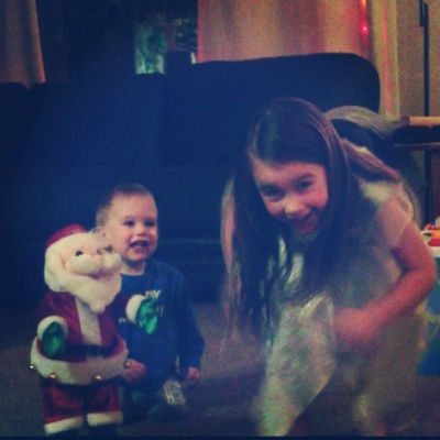 We are surprised how into the tree and all the lights Landon is this year. He attempted to help Addi decorate her tree. He “helps” plug in the lights and just stares and points at them. He loves, loves, loves our dancing Santa and giggles as Santa (and Addi) shakes his booty.